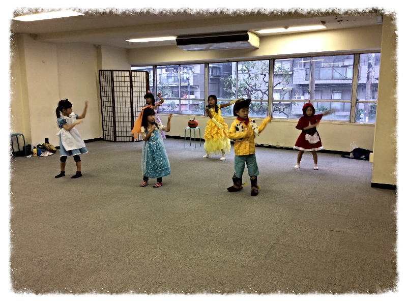 この日のキッズクラスは、みんな仮装をして踊りました。